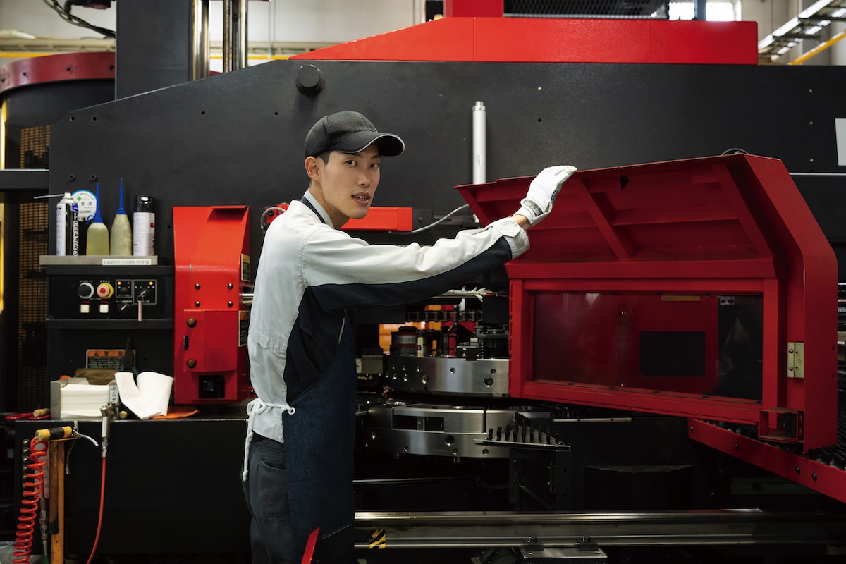 ネスターに入社したきっかけは、工場見学で見た作業の丁寧さに感動したことです。現在は、タレットパンチプレスという機械のオペレーターとして、材料の設置や金型の清掃などを担当しています。加工後の仕上がりの確認をしっかり行い、次工程にスムーズにつなげられるよう意識しています。最近では、どこにどんな形の穴を開けるかなどのプログラムを自分で設定し、思いどおりに加工できたときに大きな達成感がありました。職場の先輩方はみなさん優しく、わからないことも丁寧に教えてくださるので、安心して働けています。今後は他の作業にも挑戦してスキルの幅を広げていきたいと思っています。