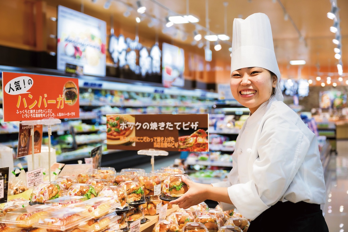ホックに入社しようと思った理由は、人との関わりが好きなのと、食に関することをもっと知りたかったからです。私は今レジ部門でレジ打ちやカウンター作業をしています。カウンターでは商品券を作ったり、商品の包装をしたりしています。レジ部門は、一番お客様との関わりが多いので、コミュニケーションが取れてとても楽しいです。また、各部門との連携も大切になってくるので、責任感がある分、達成感もとてもあります。人との関わりが好きな方、もっと食べ物に関して色々知りたい方、私たちと一緒に働いてたくさん学びましょう!