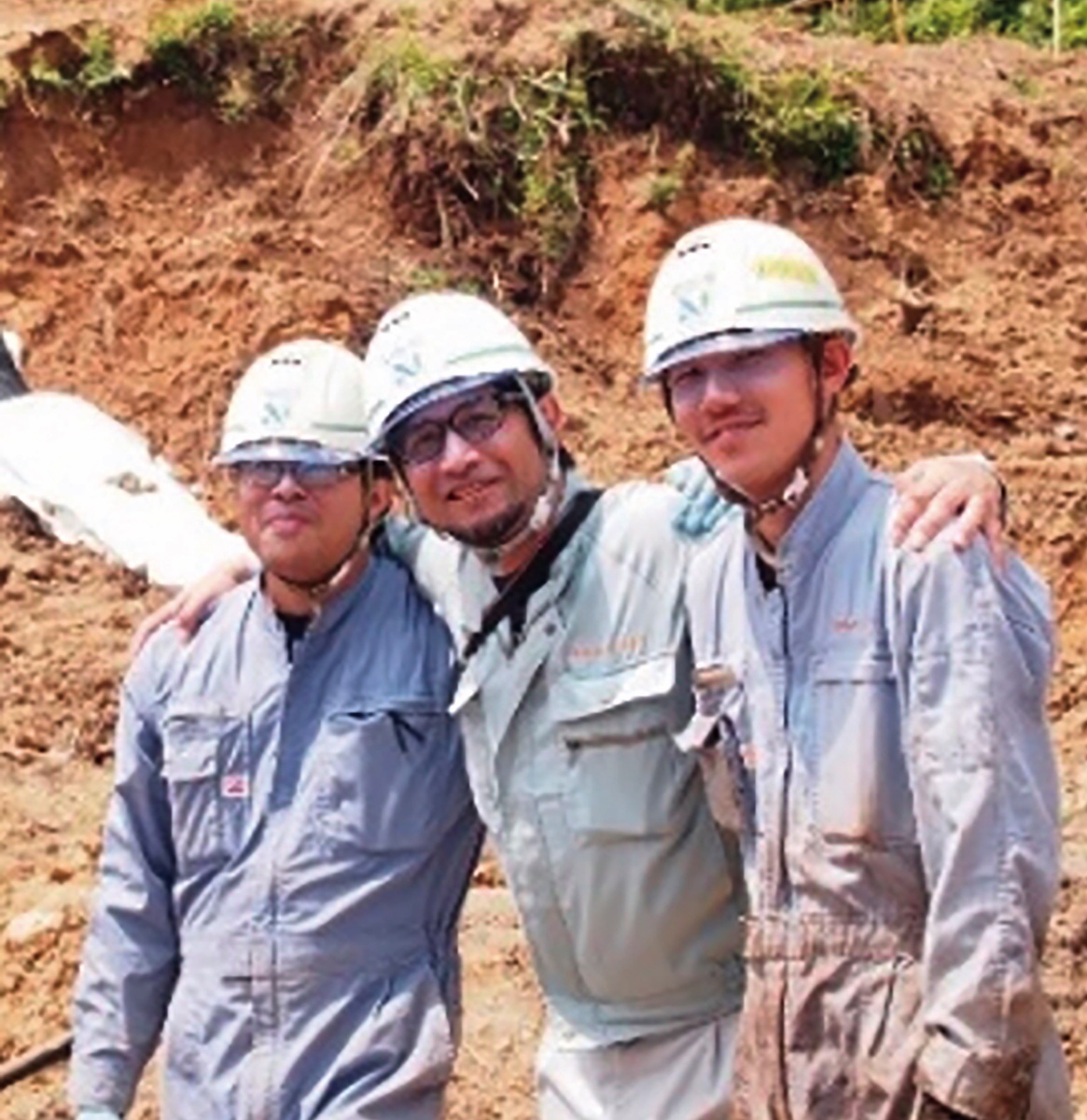 私は高校卒業後すぐに入社し、専門的な知識もなく不安でいっぱいでしたが、先輩方の丁寧な指導と社内の温かい雰囲気に支えられ、日々少しずつ成長を実感しています。現在は現場での測量作業を中心にしており、大変なこともたくさんありますが、新しいことを学ぶ楽しさややりがいを感じながら取り組むことができています。また、休日が多いためプライベートの時間もしっかりと充実させることができています。今後はさらに多くの知識や技術を身に付け、将来的には後輩を支えられる存在になりたいと思っています。